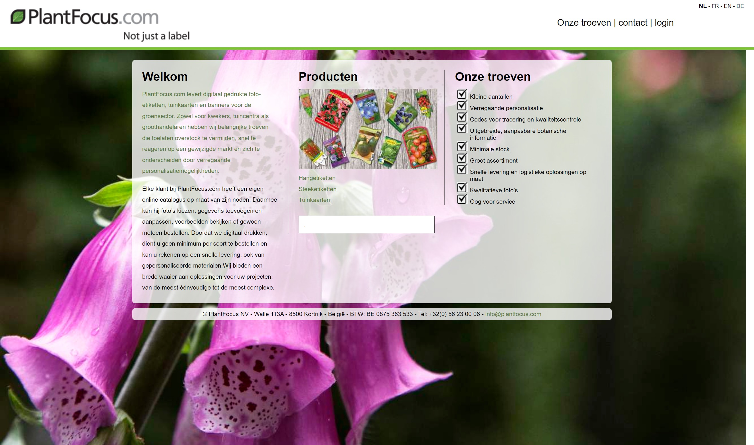 PlantFocus.com levert digitaal gedrukte foto-etiketten, tuinkaarten en banners voor de groensector.