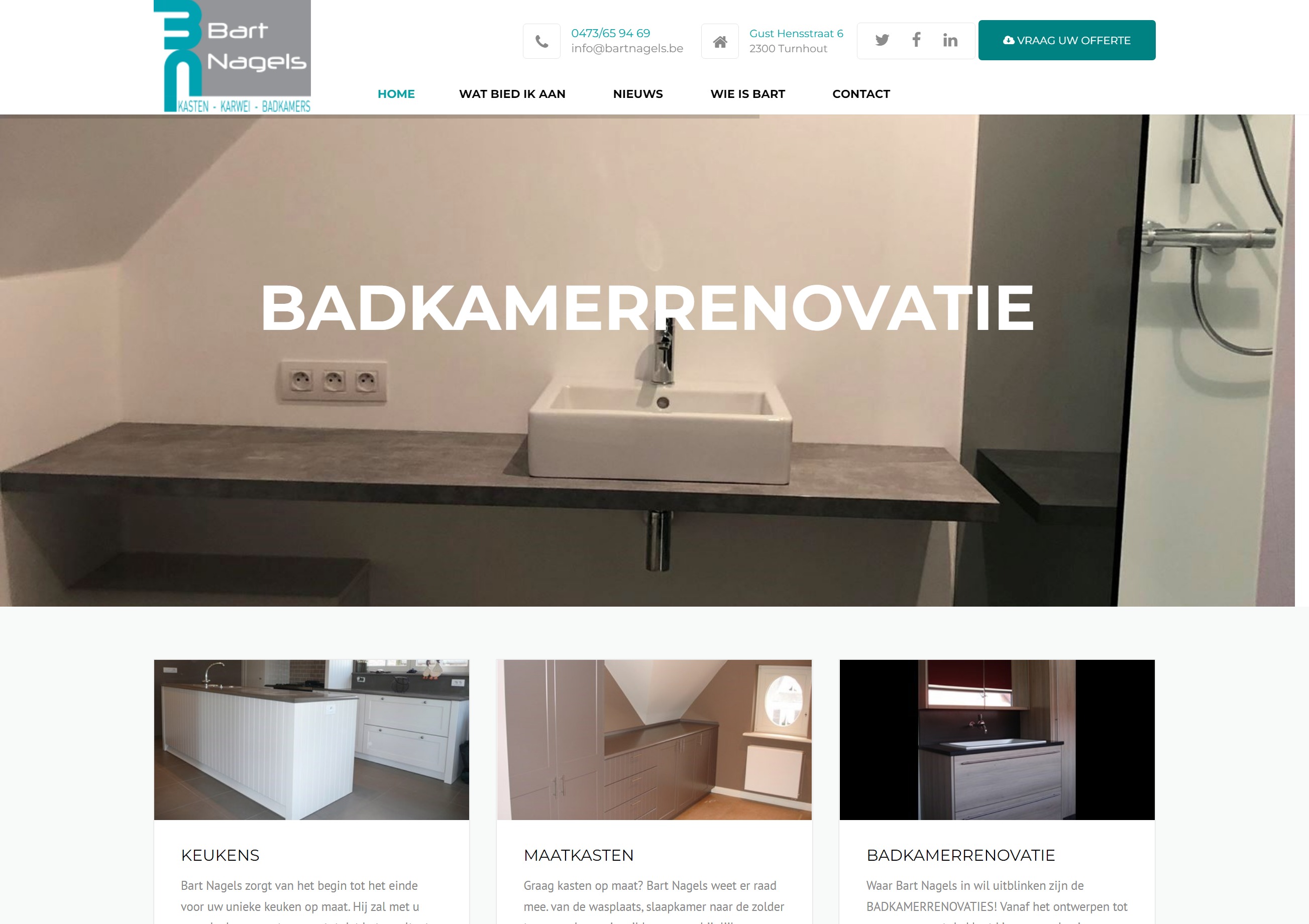 Website voor Bart Nagels, de vakman voor badkamerrenovatie's, keukens en maatkasten